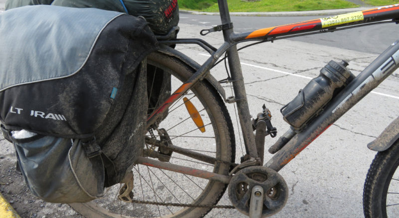 After smuggling 8kg of food each into the country (you are allowed 3kg and we did go through the red channel at the airport but were luckily waved through), we collected our hire bikes which would be our companions for the next 20 days. On first inspection they looked bad, on closer inspection they were worse. I ended up with a mountain bike the same size as Tim’s after rejecting mine (no brakes or suspension). We loaded our panniers onto the racks (carrying 20kg each) and after a lot of good lucks, hand shaking and waving, set off on our epic trip…. Only to return half an hour later because Tim’s chain was slipping so badly he couldn’t continue. A quick gear cassette change and we set off again – far less dramatically this time with smiles more of a “hope we don’t see you again too soon” type.