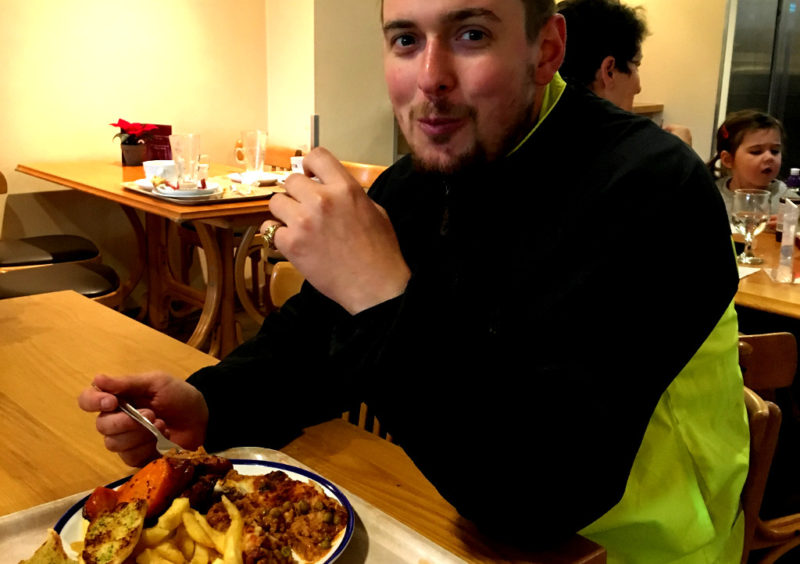 We tiptoed across Farthing Downs wet and slippery cattle grids and then on to Chaldon Bletchingly and Outwood. Christmas shopping was in full swing at Haskins Garden centre but the cafe was surprisingly quiet. Most of us had a cuppa and a snack but Cam took advantage of the fact his dad was paying and carbed up for the return trip on Shephard’s pie and a side portion of chips.