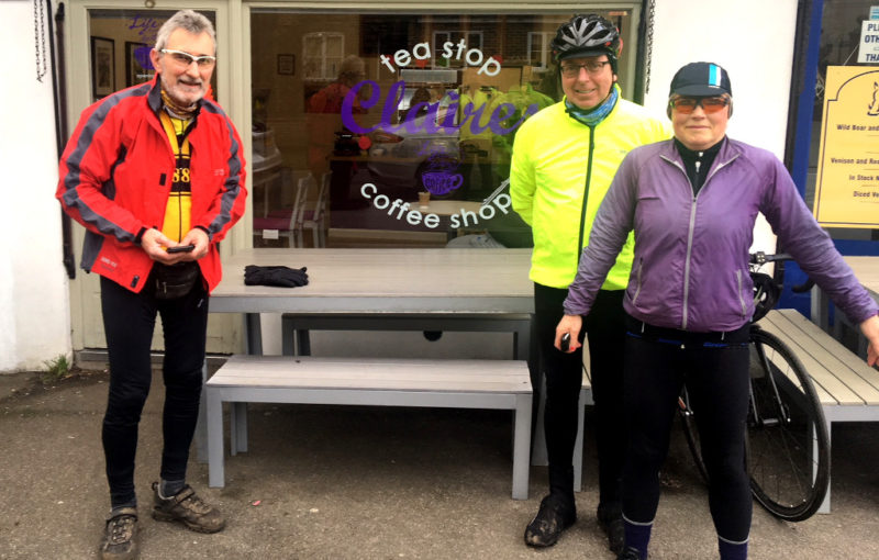 Four of us set out on a favourite route via Chipstead Valley, Tattenham Corner, Ashtead to Domestique at Bookham. The cafe has been renamed Claire’s cafe after the new owner but is very much the same.