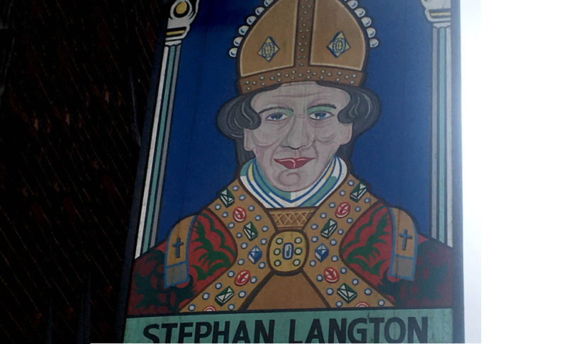 We discussed who Stephan Langton might have been. The pointy hat suggests possibly a Bishop. A Google search later showed we had considerably underestimated the high standing of the man. Wikipedia reports the following;