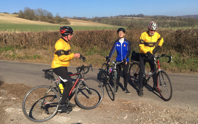 Four of us, Delmar, Graham, Roger and Pete met in thick, cold fog in Purley. It was a difficult day to decide what to wear, as by the time we had climbed up Mitchley Hill to Warlingham the sun was out and we had clear blue skies for the rest of the day. Other cyclists who started out later were in shorts and T shirts, we were sweating in our winter woolies.