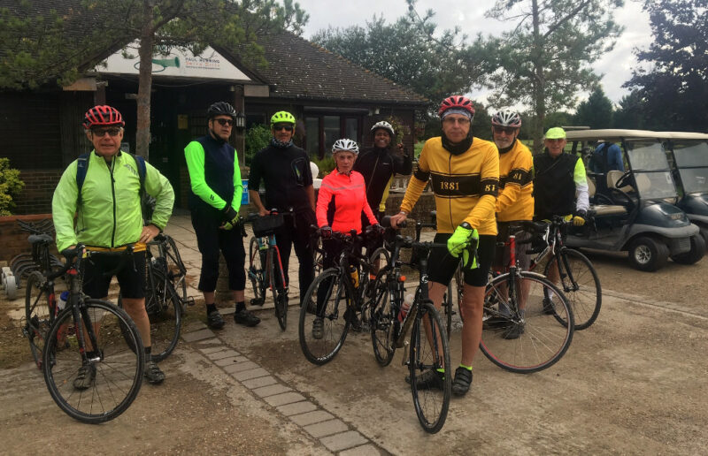 Seven of us met at Shurguard ( Asif, Bob, Jason, Frank, Stuart, Jim and Pete)  for an easy ride out to Horne Golf Club for tea. Stuart was touting for others to join him on a ton to Shoreham but regrettably no takers.
