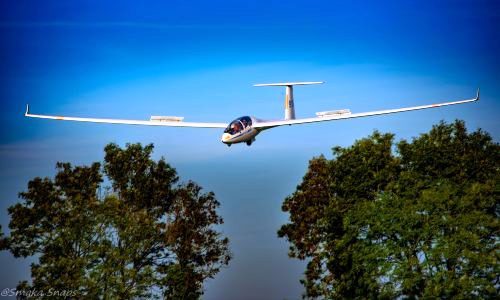 There were three sleek and very 21st century gliders circulating around overhead. These were using the strong up draught of air as it swept up and over the steep escarpment, providing a continuous lift whilst the current weather prevailed. These had probably taken off from the airfield we had passed the day before, on our way into Stroud. The one with the “rustic” Glider Cafe, truck stop opposite.