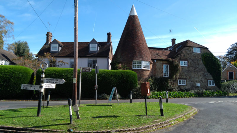 Lima stayed leaving three of us to head south across the Weald and the gorgeous descent to Eggpie Lane to Hildenborough before turning north under a brilliant canopy of multi-coloured leaves that marked the height of autumn. The roads were almost deserted as we sped past Ightham Mote. Well that’s a bit of an exageration as it was the only real climb on the route to Ivy hatch [below]
