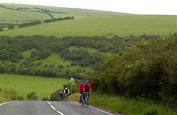 And it wasn’t. Ricki tried to nut a coach out of his path (now I understand why he wears a helmet …). Two of us drop chains on the first ascent and by the time we reached the top of the South Downs the weather was worse than miserable.