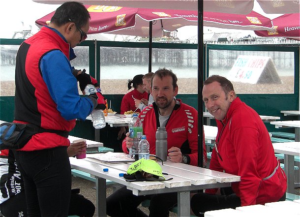 We were in Brighton before 1pm with a moving average of 13.5 mph. The £4.50 fish, chips and mushy pea cafe on the beach was too good to miss for four of us. Ricki opted for the Burger King Whopper alternative.
