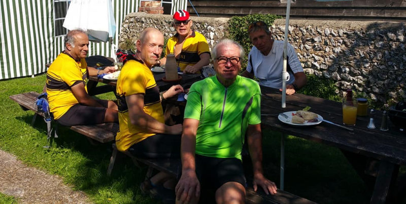 The Eastbourne Ride has a reputation for finding closed cafes and a medical emergency at Mrs T’s left us gasping. However almost next door was The Griffin ‘open 8am till late 365 days a year’. It was, it had a garden, it had tea, coffee but alas, no cake!