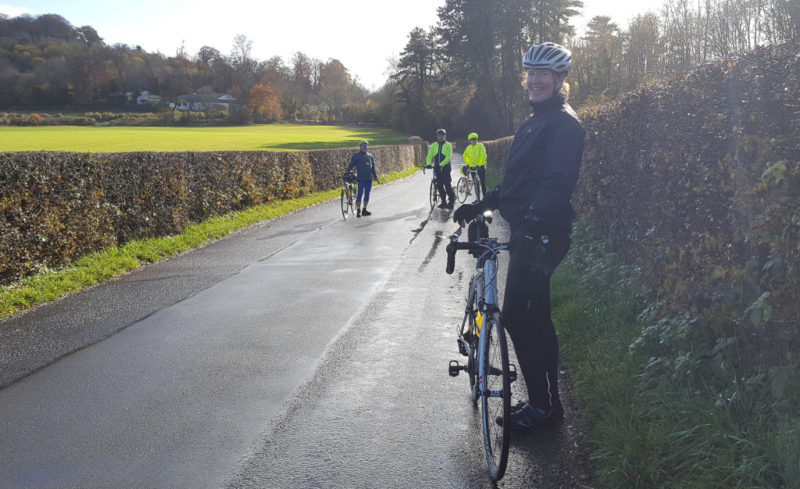 4 of us met at Shurguard for the very short ride to Woldingham. A quick assessment indicated we all had a shout so we headed off up and over the hills of Caterham.