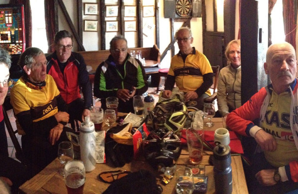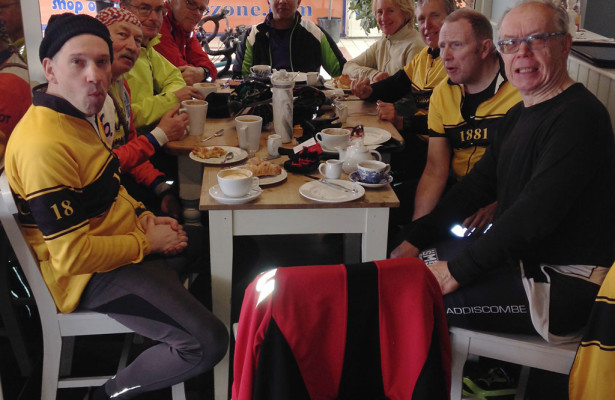 We pulled into Tonbridge at 10.10 in good time to hunt for Finch’s House Tea Room where Ken was waiting for us serenely having taken the train. As I queued up for my cuppa (actually a refined pot of tea) I spied Jeremy sheepishly waiting for his breakfast. At this point Jim headed homewards leaving 9 of us to carry on towards Hawkhurst a further 25 miles away.