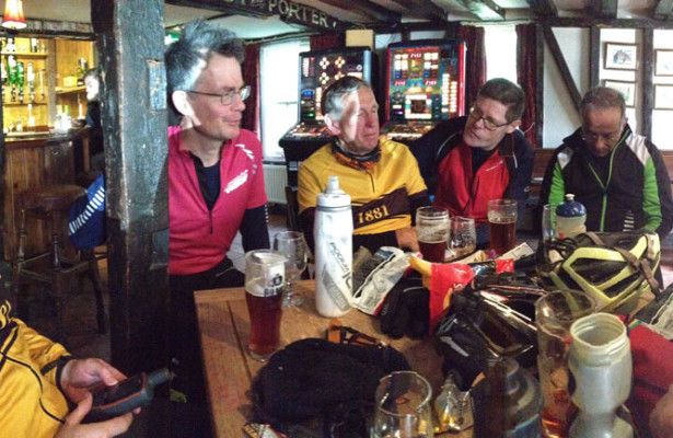 The Weald of Kent is pretty lumpy but the views and countryside are more than suitable compensation. Thanks to the route from Tomtom’s tour book we stayed on small, narrow lanes all the way to Goudhurst where we faced our only steep climb of the day. A stiff 100m straight up to a magnificent view facing the North Downs in the distance. Another fast descent and several ups and downs and we were at Hawkhurst for lunch.