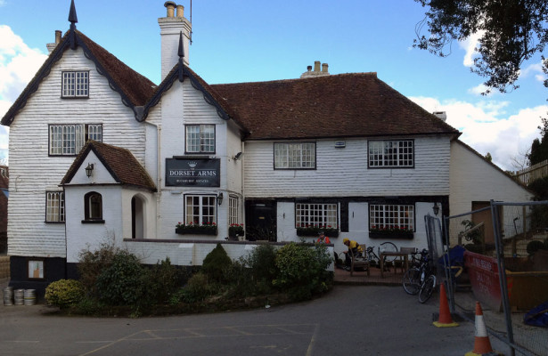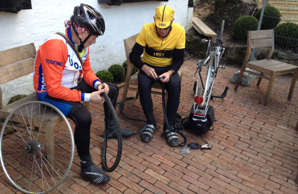 More hills to Frant and then more cool countryside before Jeremy left us near Groombridge. This was where Stuart had the first of his punctures. We stopped at the very upmarket Dorset Arms for more refreshments while Stuart searched in vain for the cause of his puncture.