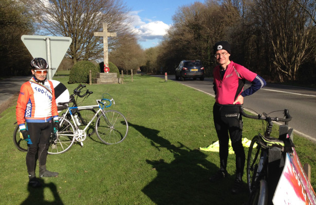 In through Hartfield and then Butcherfield Lane in to Holtye. A good place for another puncture thought Stuart so some waited at the cross while Ken donated a self adhesive patch to get Stuart home.
