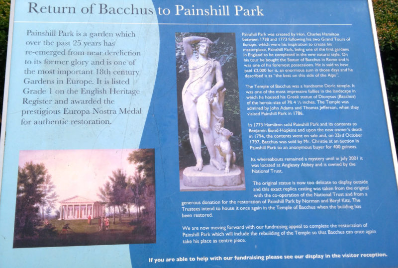 And this (if your eyes are good) is the explanation of how Baccus came to Painshill: