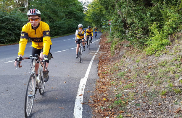 Usually its a straight run home after the pub but Tom had other things in mind as we set off in the opposite direction towards Woking and then snaking south to East Clandon and West Horsley. The return was up Little Switzerland but a fairy caught Maggie’s front wheel as we crossed the A24. a great but unexpectantly longer ride than usual.