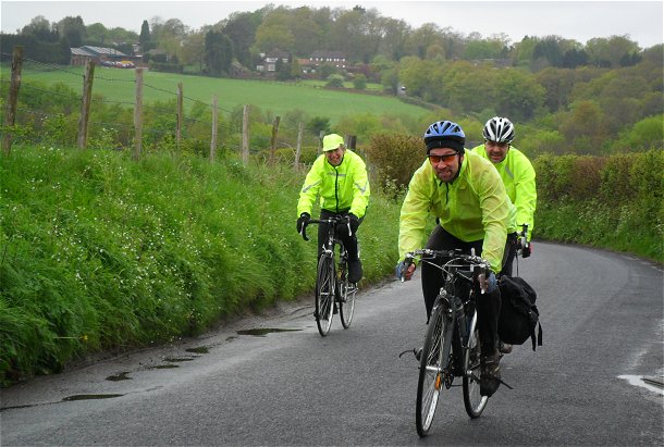 The drizzle came, then the rain and another pause before the cycle repeated. The weather being miserable we thought it best not to let it have too much time to make us likewise. We abandoned our plan to head out to Chequers at Heaversham and beat a retreat the Stanhope Arms in Brasted leaving Ewa to take this photo as she headed straight back along the Pilgrim way …