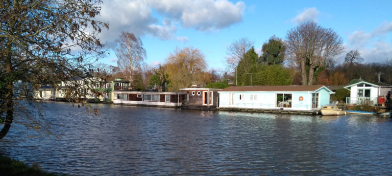 Another Sunday defying the forecast. It rained continuously for the first two hours as five of us rode through a miserable landscape looping souththrough Headley and Cobham into Weybridge following the Thames back through Walton the cricket club at East Molesey. The sun was now making a belated appearance lighting up the houseboats across the river.