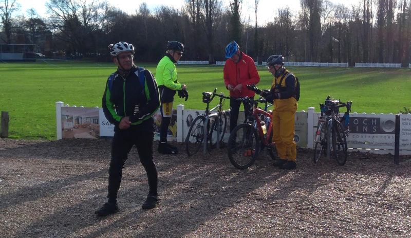 Maybe sunnier but certainly no warmer. Tom, who was standing in for Mark, took a more direct route back through Esher where Barry repaired a puncture in record time, and the many backstreets of Epsom. Oh, and Barry conced that a heavy mountain bike was not ideal for getting up & down steps across the railway.