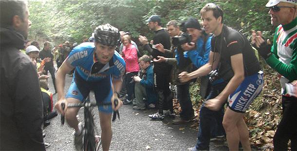 This year everybody seemed to make it even if some choice of gearing was unwise. Just over a hundred competitors and a hundred cheers as the ran through the narrow gap left by the crowds and almost over camermen daring to get a last minute low action shot.