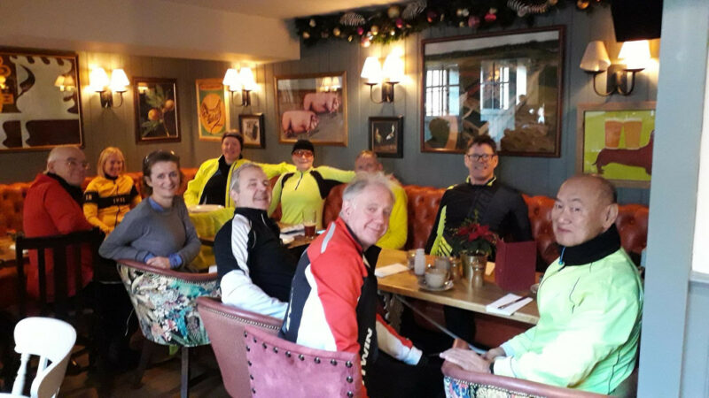 Mark & Julia led their respective group to the Red Barn near Lingfield by different routes. The Red Barn was very comfortable if a tad expensive: