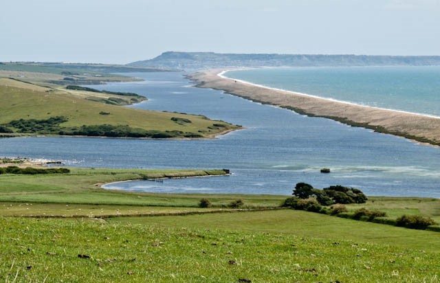 Our chosen route took us as close to the coast as we could get, because of the great views over the world famous, Jurassic Coast. The white line adjacent to this coast line, is the also famous, Chessil Beach. This geographical oddity is a vast stretch of shingle, which continues from the Isle of Portland for over 12 miles, reaching upto 50 feet high and 660 feet wide in places. It forms an equally long lagoon, including at Abbotsbury, our first port of call.