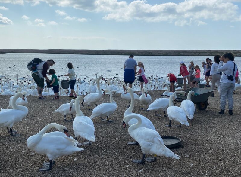 Whilst the feeding is going on, the Swan Keepers provide a very informative and interesting talk about swans, their lives, history of the swans and the swannery, and much more.