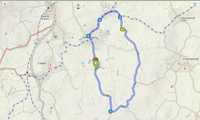 This is the suggested 8 mile course – a country lane circuit, showing a start and finish adjacent to Tan House Farm, a popular tea stop for Anerley B.C.