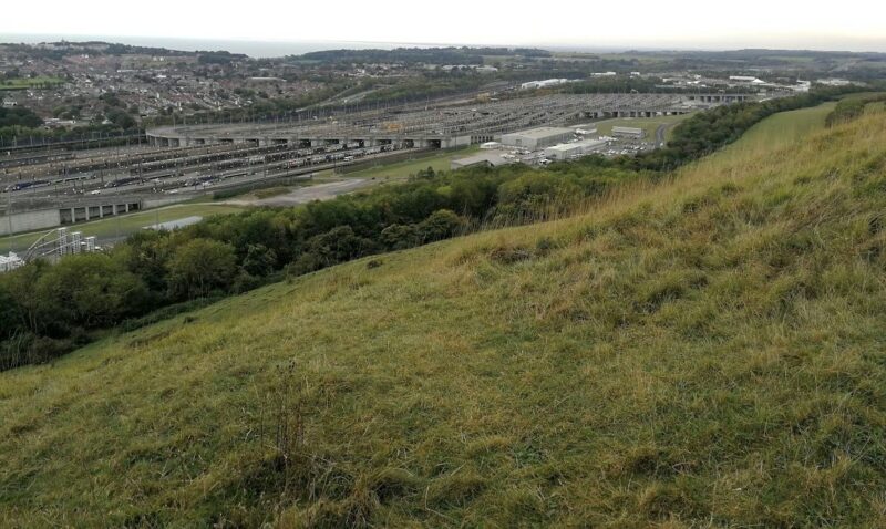 Below is a view from the hill overlooking the huge railway marshalling yard at Folkstone at the entrance and exit of the Channel Tunnel.