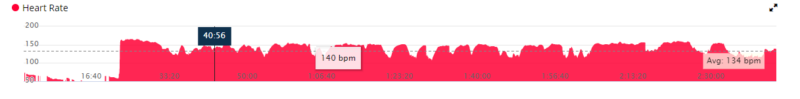 In case you’re wondering how hard this was? This is my heart rate for the ride but bear in mind that I am supposed to keep below 142 bpm.