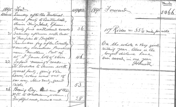 For comparison, in the previous year, 1894, G.H did 118 rides, averaging out at 40 miles per ride, with a grand total for the year of 4,760miles.