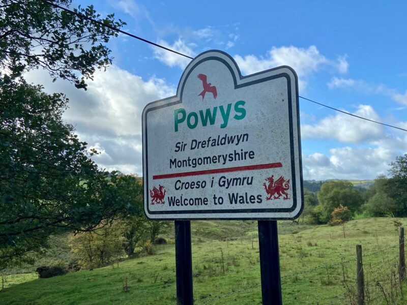 After some 4 miles it goes thru the little hamlet of Newcastle. Presumably there must at sometime have been a newer castle than the one at Clun – but no trace of it now. From here the road, as shown in the route profile above, begins a steeper climb to the ridgeway at circa 11 miles from Clun. But before this, at circa 10 miles, the road crosses a river at Anchor Bridge which is identified by a sign showing that we had arrived at the Welsh border!