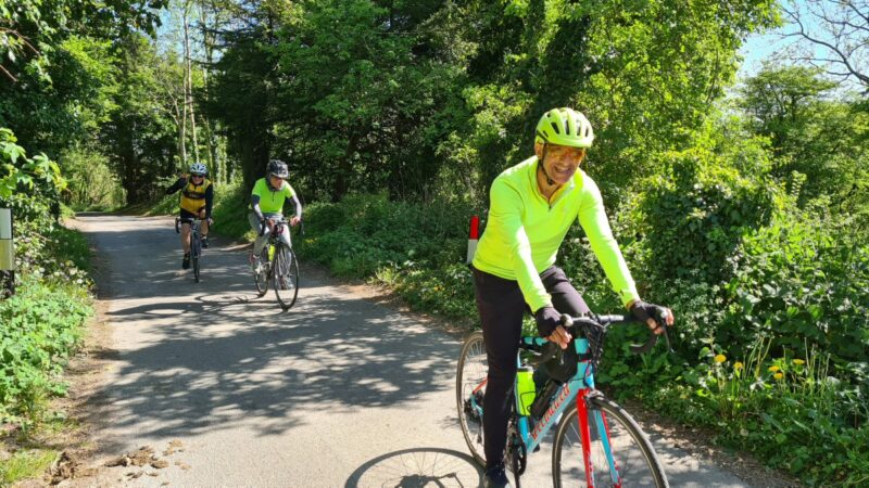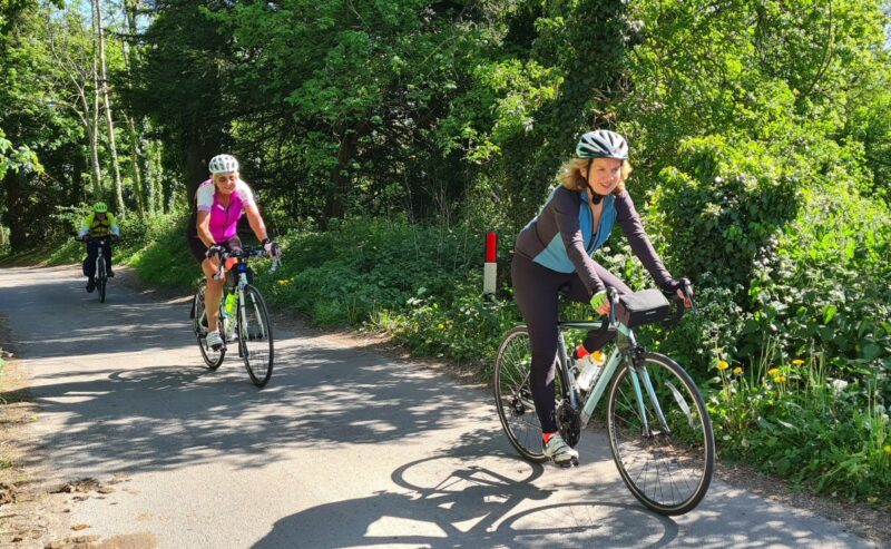After a quarter mile we were joined – and passed – by a steady stream of speedy cyclists, from a minor lane on our left. All the bikes had numbers afixed, clearly we were on a Sportive route!