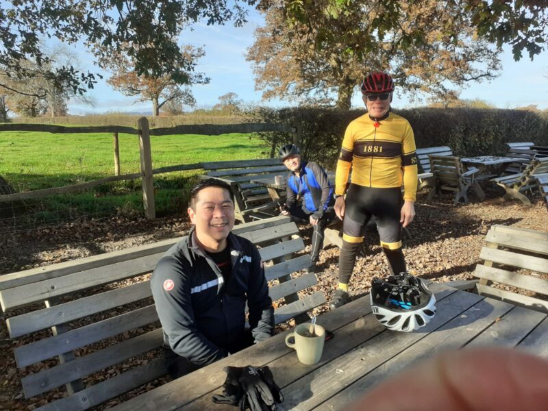 Went down Purley Downs Road to 501 [Shurgard 10am] en route to Newdigate via Coulsdon, Kingswood, down Pebble Hill, Betchworth, 7 Stars of Leigh to Tanhouse Farm café. Met 3 cycling nurses from Crawley who worked at East Surrey. Coffee and scone went down well.