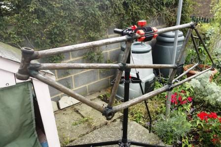 And mention of Phil’s tandem reminds me that he sent me a photo of the bare bones after he had stripped it down for renovation and re-building.