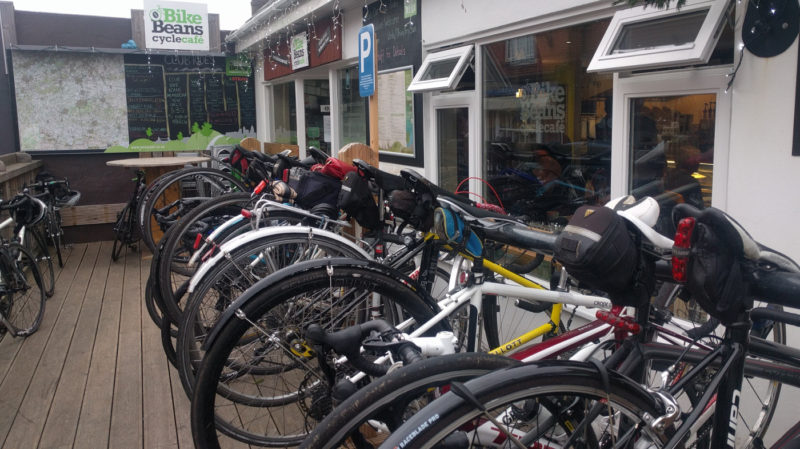 Almost a summer morning temperature wise tempted ten to follow a rejuvenated Mark to Bike Beans at Ashtead. John & Meike were there to greet us and give Belinda a quick massage. Thence away down to the foot of Box Hill for a canter up and back through the Kingswood Estate once more.