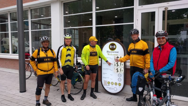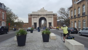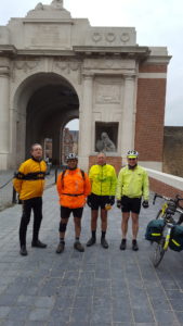 Ricky decided to cut out the last two days and head straight back to Calais avoiding a fair amount of mileage and the early morning dash for the coast. We still had 4 hardy men to complete the final sections starting with the border crossing at Comines. We stopped here to enjoy the amazing townhall. John Eden told us how the brick was laid out in English bond, where the bricks are laid in alternating layers of headers and stretchers making the walls strong – a method used in civil buildings.