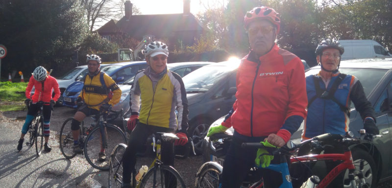 Group ‘B’ was big so became ‘B1’ & ‘B2’ led by John D and Des respectively on a bright, beautiful autumn day with all the remaining leaves vibrant in a multi-coloured patchwork as we sped along country lanes. It was good to welcom Tom V back after a five week painful layoff.