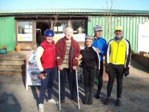Here we met John and Meike and were later joined by a guest visiter, Sandra’s husband, Harvey. He was out on a training ride, longer and more strenuous than our little 30 mile jaunt!
