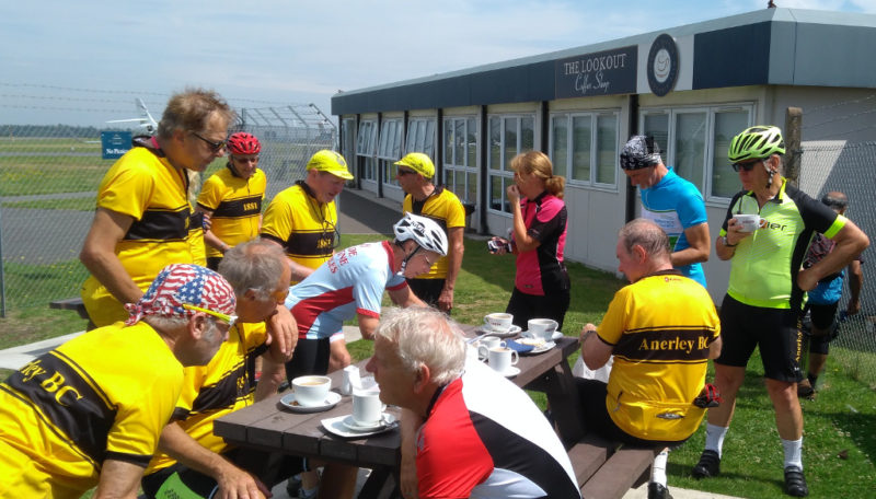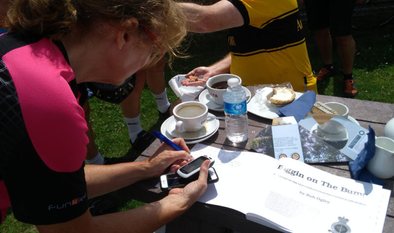 It was worth it. Team ‘A’ were keeping the table and benches warm at the Lookout Cafe. We were buzzed to our delight by a Spitfire. The cheering news that John T was home from hospital meant we went one better than a ‘Get Well’ card with a ‘Get Well’ book – Biggin on the Bump: The Most Famous Fighter Station in the World signed by us all. Hope you enjoy it John!