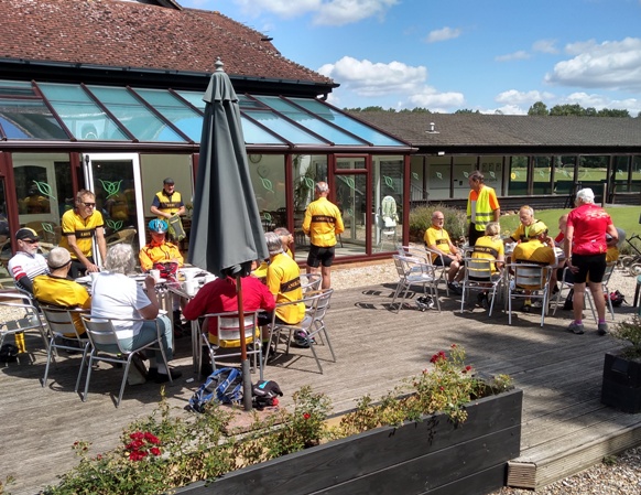 Taking a left fork at Chiddingstone Causeway, most of my group were into new territory, along some lovely country lanes leading eventually after some 25 miles, to our tea stop at Hilden Golf Academy. Here we met up with Fran’s group and the 9.30 group led by Tom Vaz.