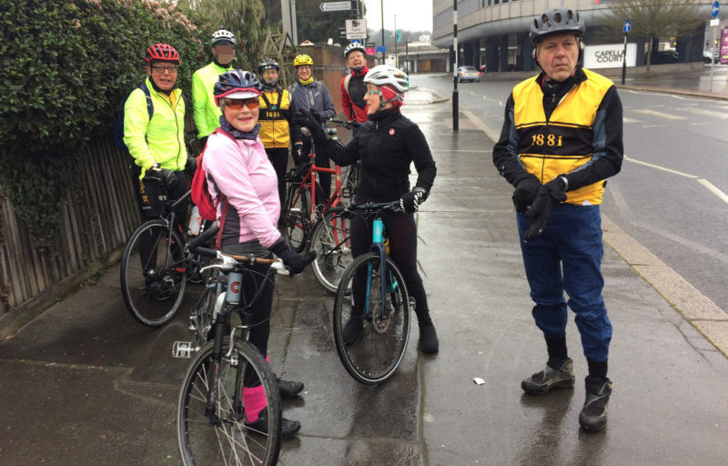 I set off from home in the drizzling rain and cold wondering whether there would be anybody joining me on today’s ride to Wimbledon Common. I needn’t have worried as there were 8 hardy souls at Shurguard; Barry, Bob (the fireman), Bob (the builder), Karen, Belinda, D, Frank and Dave G. With Tuesday’s rides called off due to ice I took the precaution of delaying the start until 11am to minimise the risk of icy roads.