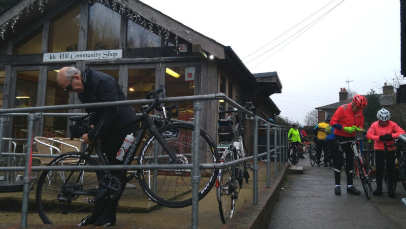 The Steadies & Relaxed combined for tthe last ride of the year – led by Bob G to Ide Hill Community Shop. Short and sharp and good to meet the Speedies there.