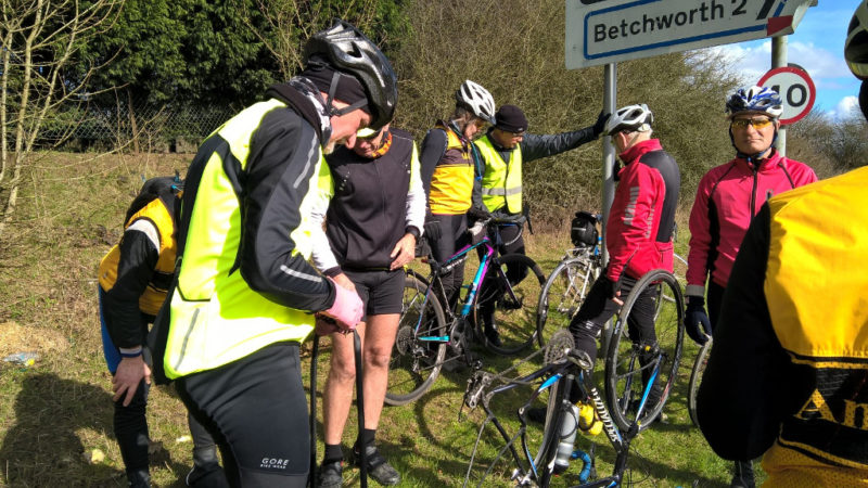 We rode out to Mickleham and at the A24 split into the Ranmore Mountaineers and the Duck-out to Denbie divisions. By now the weather was glorious. Re-united at Denbies the early arrivals left early led by Tom V and never seen again. The Mountaineers went on to re-conquer Box Hill before leader Peter R gave our amateur photographers some entertainment …