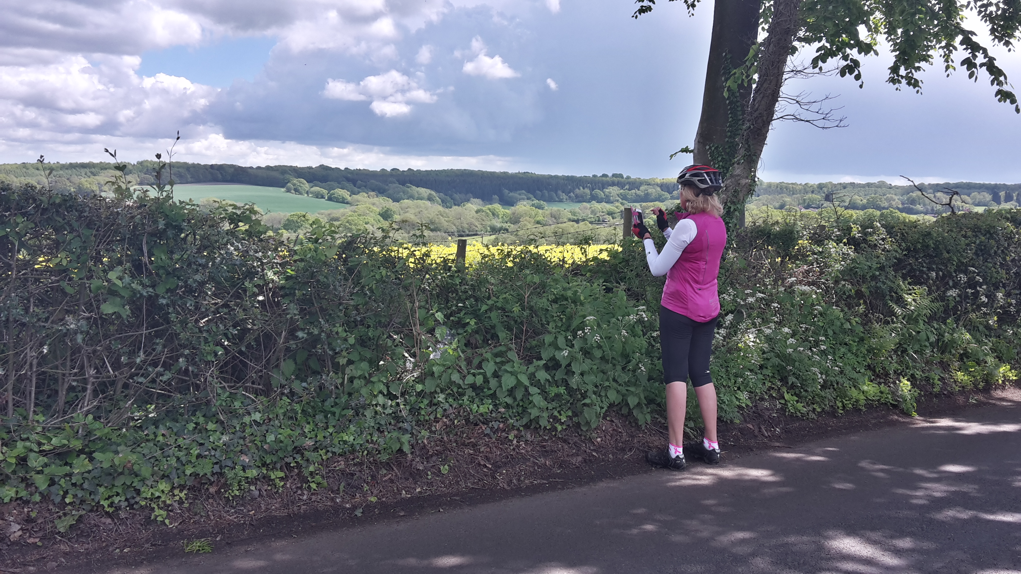 The ride home took us over Goathurst Common and Ide Hill where we stopped to take in the view across to Bough Beech. Bob does not appear in the photo – I presume because of the jacket potato scandal but the rest of us had a pretty decent ride. Indeed some people enjoyed the views so much that they stopped to take unauthorised photos…