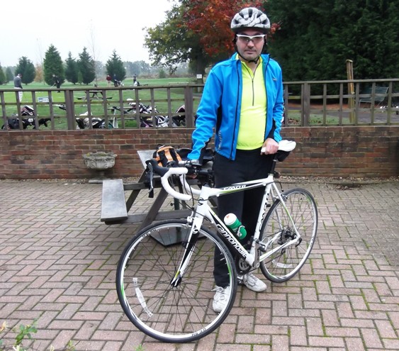 Here we pose for the birthday group photo. You will note a new face. Well not quite new because he came out with us on last week’s Tuesday ride. Let me introduce Philip from Forest Hill. Philip is the proud owner of a Cannondale CAD 8 and has joined us with the intention of getting fit and ready for the Scope, 100 mile round London, charity bike ride. The CAD 8 is fitted with the now standard compact chain set with gear ratios that we touring cyclists would suggest are not best suited for the steep gradients of the Surrey hills. Naturally the topic of gear ratios featured at the tea table!