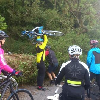 But then again they might have wanted something a bit stonger than tea, after what was obviously an eventful ride! Here they ponder a rather large fallen tree, completely blocking the road.
