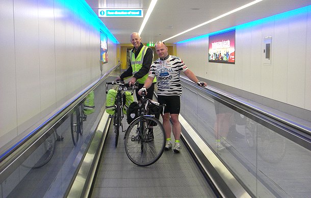 The July weather was turning unseasonably warm as left London preparing for the Olympics at midnight Thursday 19th. Neverthless appalling rainstorms of the last few days had left the Surrey lanes in a dangerously gravelly state. Lethal at night. Hence after passing Anerley’s Shurguard start point we hugged the A23 to our tea stop at Gatwick Airport. We were about thirty of which eleven planned to go all the way to Paris. The others would peel off and watch the closing stages of the TdF in the comfort of a Newhaven or Dieppe bar …
