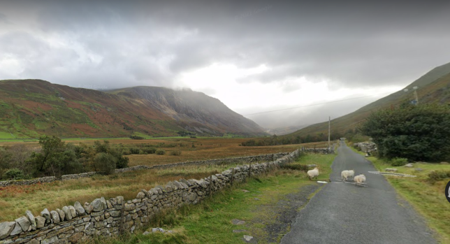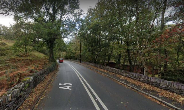 We can stay on the A5 to our lunch stop destination in Betws Y Coed, or cross over the A5 – following the blue line which is a very challenging, very narrow, and very steep, country lane, as pictured on Street View.